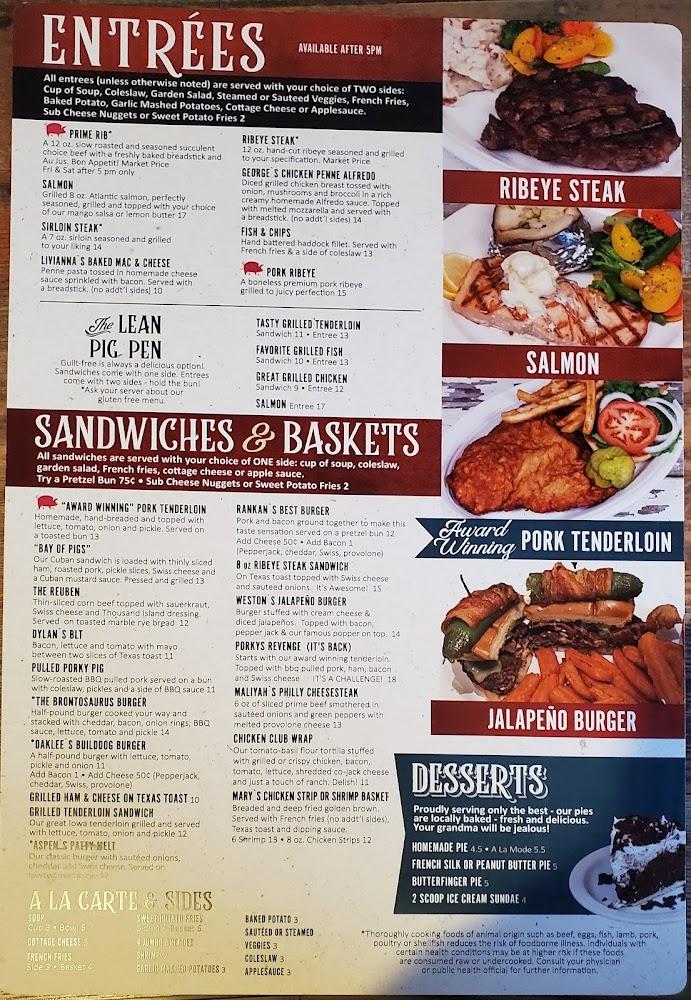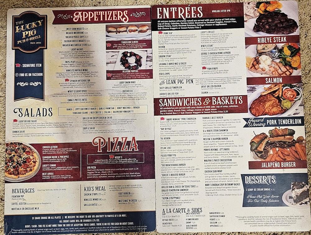 Lucky Pig’s menu caters to a variety of tastes while staying true to its roots in traditional American cuisine. Popular appetizers include sweet corn nuggets, mozzarella sticks, and their crispy onion rings. Entrées feature great choices like the famous pork tenderloin and chicken tenders. Don't miss the burgers!