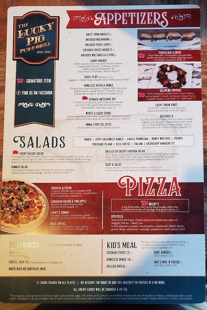 Welcome to Lucky Pig Pub & Grill, your go-to spot in Ogden for a delightful dining experience! Located at 113 W Walnut St, we offer a cozy atmosphere perfect for lunch, dinner, or a casual night out. Enjoy a wide selection of craft beers, excellent cocktails, and delectable desserts, all while watching your favorite sports. Our menu features simple, traditional dishes and local specialties, available for dine-in, carryout, or delivery via MyTown2Go. With accessible seating and fast service, Lucky Pig is perfect for everyone. Join us for happy hour and savor our inviting ambiance today!